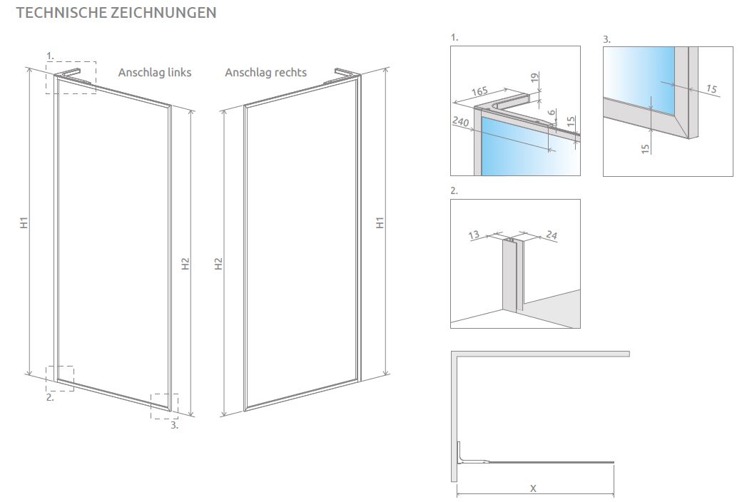 Radaway Walk In Modo F SL II Walk-In 8 mm mit Wandwinkel