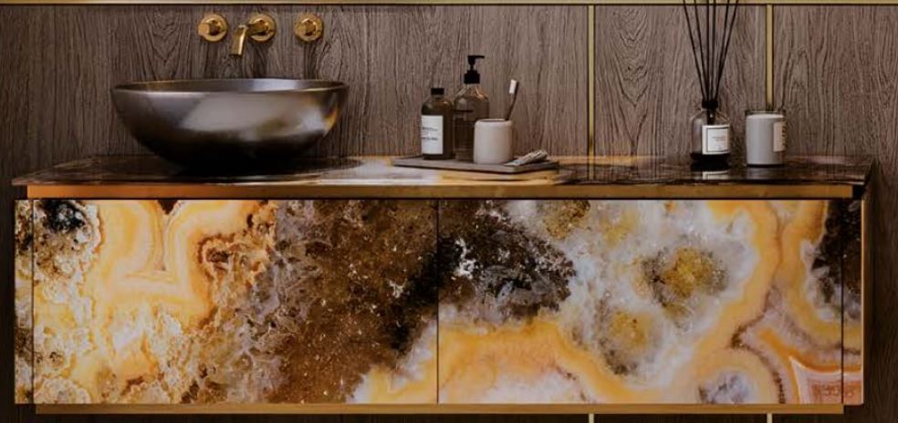SICIS definiert Luxus und Funktionalität dank Vetrite neu , einem exklusiven Material, das zum Leitmotiv einer einhüllenden und leuchtenden Ästhetik wird.