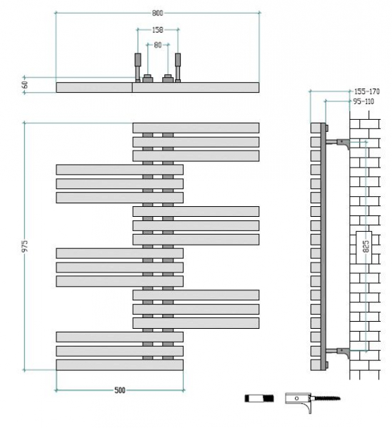 - Abstand Heizkörperfront bis Wand: 155-170 mm