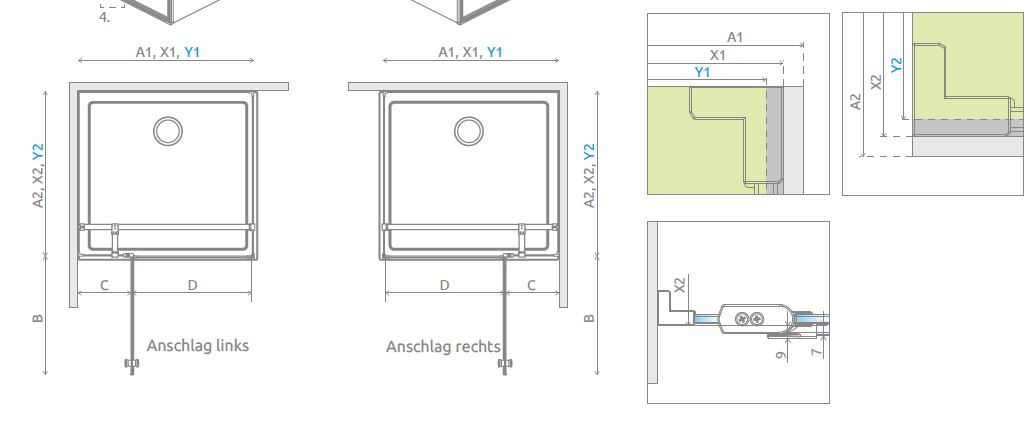 Radaway Eos Eckdusche Pendeltür an Festteil und Seitenwand PUK Naab