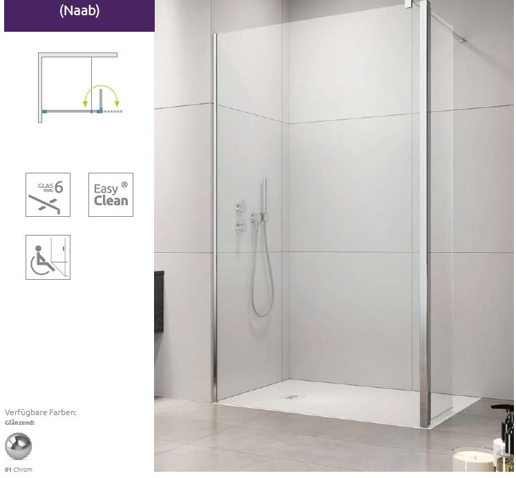 Radaway Eos Walk In Duschwand mit beweglichem Flügel PUK Naab