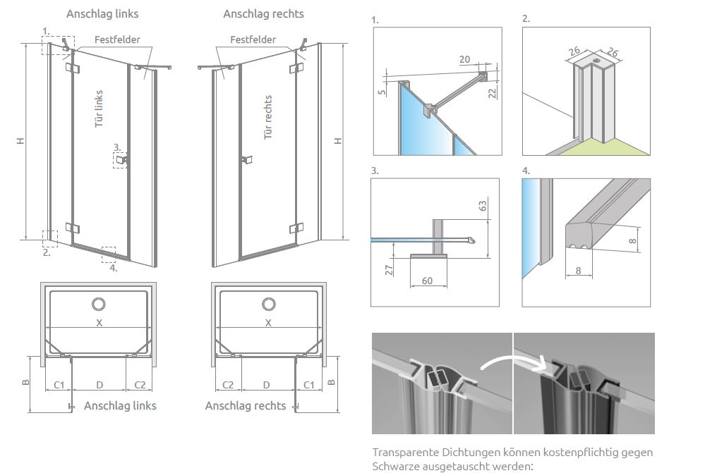 Den Verbrauchern gewähren wir auf Duschabtrennungen 10-jährige Hersteller-Garantie.