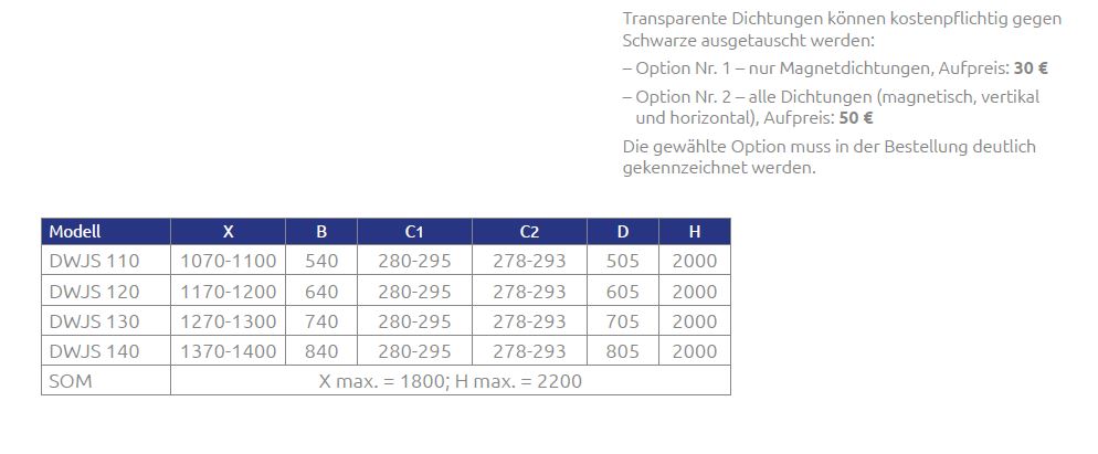 Wir geben eine 10-jährige Garantie für die Ersatzteilverfügbarkeit (ab Produktionsende des angegebenen Duschkabinenmodells).