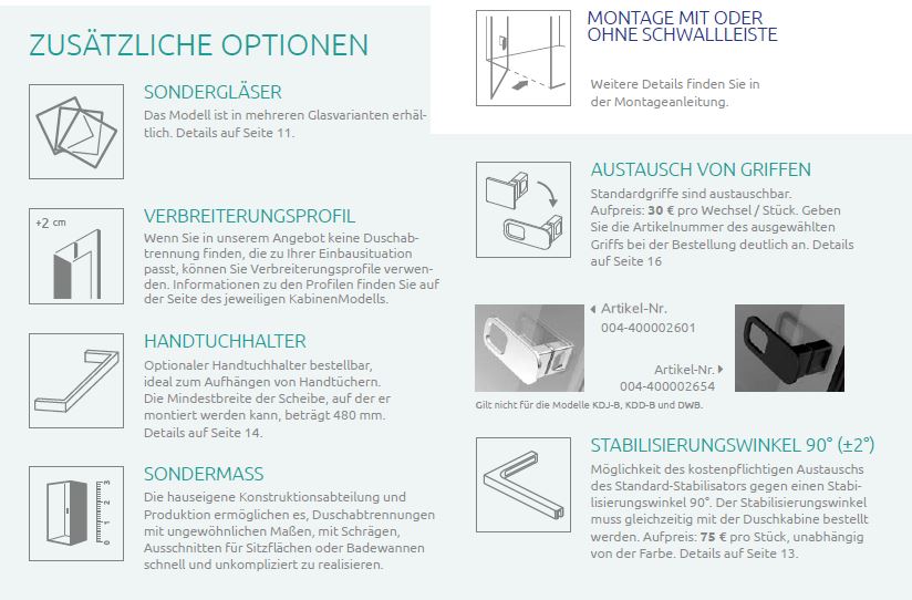 Den Verbrauchern gewähren wir auf Duschabtrennungen 10-jährige Hersteller-Garantie.