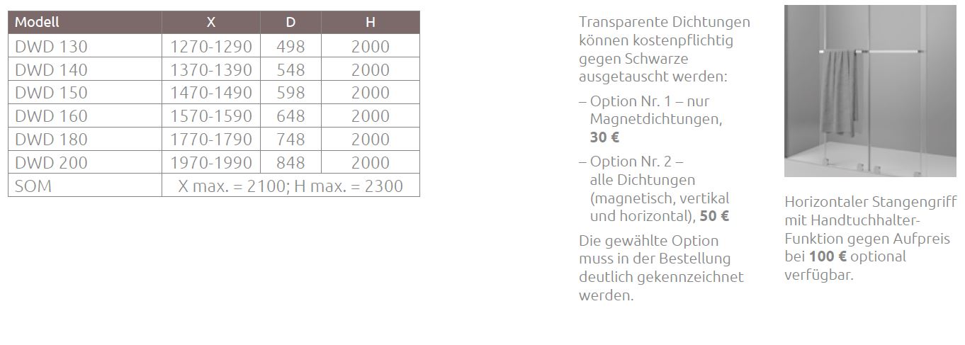 Wir geben eine 10-jährige Garantie für die Ersatzteilverfügbarkeit (ab Produktionsende des angegebenen Duschkabinenmodells).