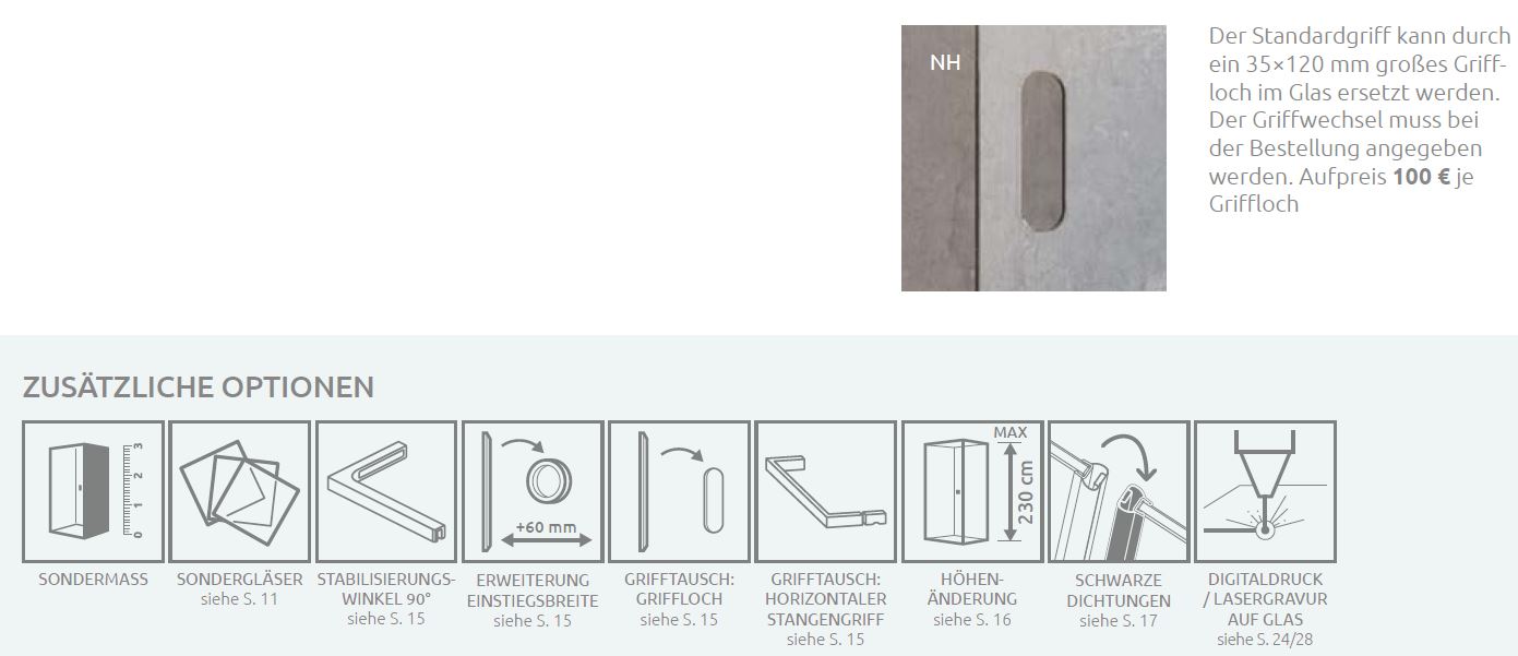 - Optional und gegen Aufpreis auch mit folgenden Griffen lieferbar: