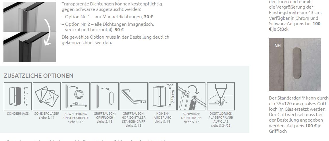 Den Verbrauchern gewähren wir auf Duschabtrennungen 10-jährige Hersteller-Garantie.