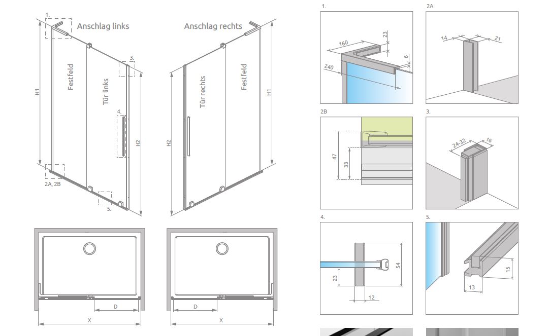 - 90°-Wandwinkel / Serie SL - Nur bis Breite 1200 mm möglich!