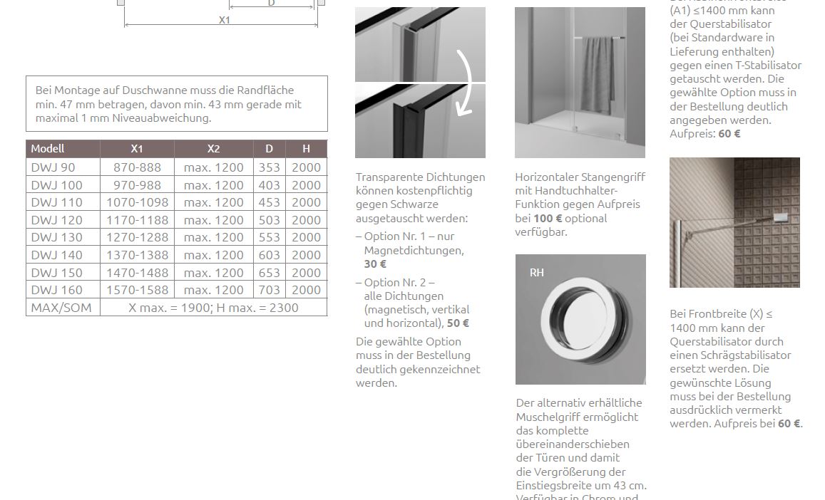 Den Verbrauchern gewähren wir auf Duschabtrennungen 10-jährige Hersteller-Garantie.