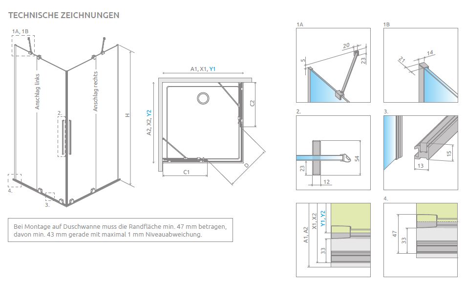 Radaway Furo KDD/SL Eckeinstieg mit Gleittüren Eckdusche mit Schiebetüren PUK Vils