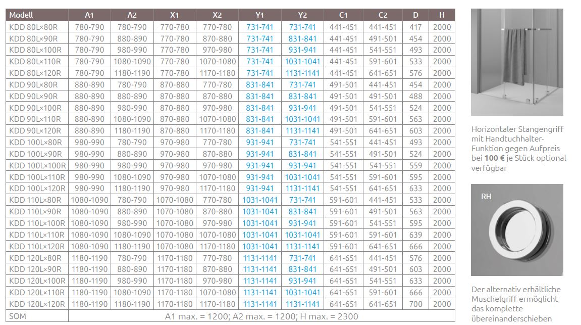 - 800 / 900 / 1000 / 1200 mm x 2000 mm
