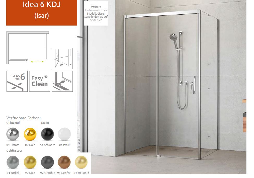 Radaway Idea 6 KDJ Eck-Duschkabine Gleittür/Schiebetür und Seitenwand PUK Isar