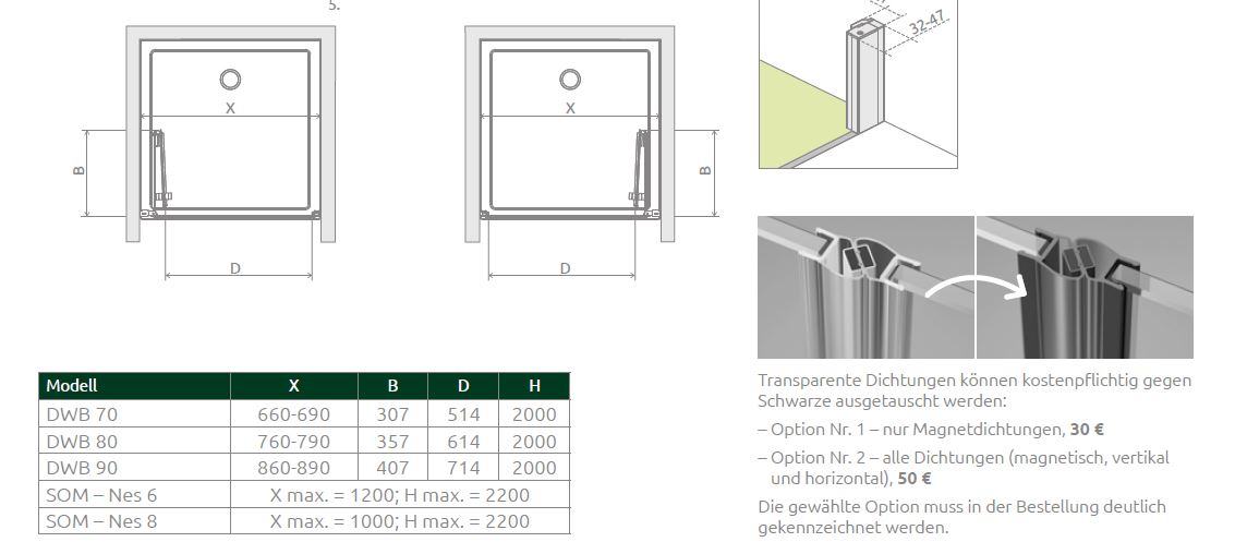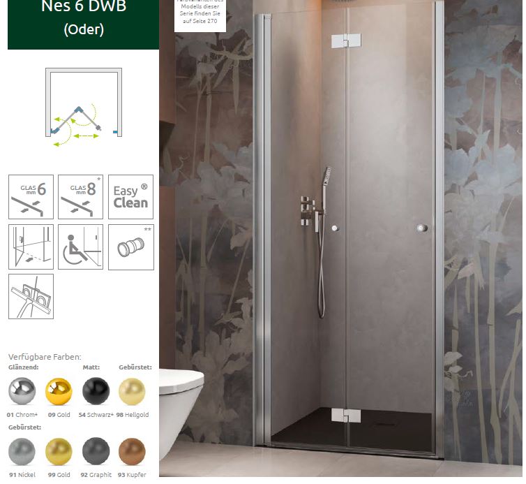 Radaway Nes DWB Duschtür für Nische Duschabtrennung Drehfalttür Falttür PUK Oder