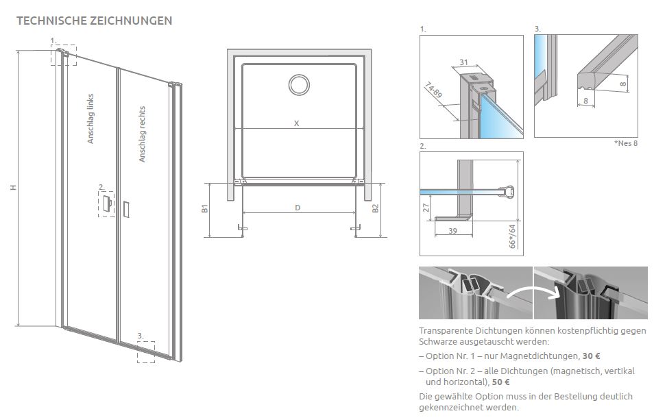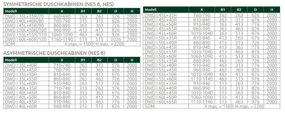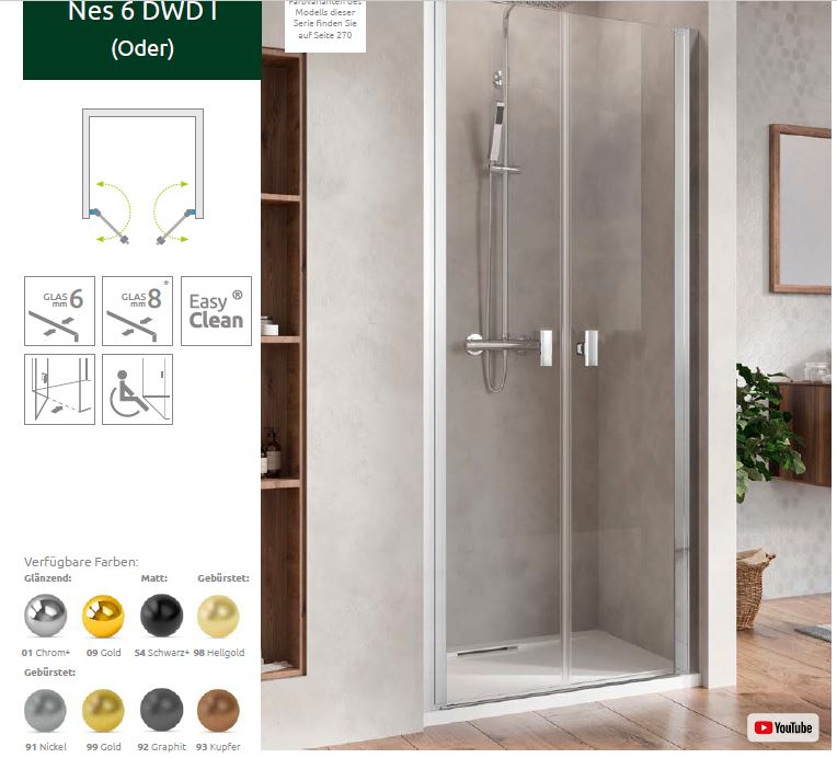 Radaway Nes DWD I Duschtür für Nische Duschabtrennung 2 Pendeltüren PUK Oder