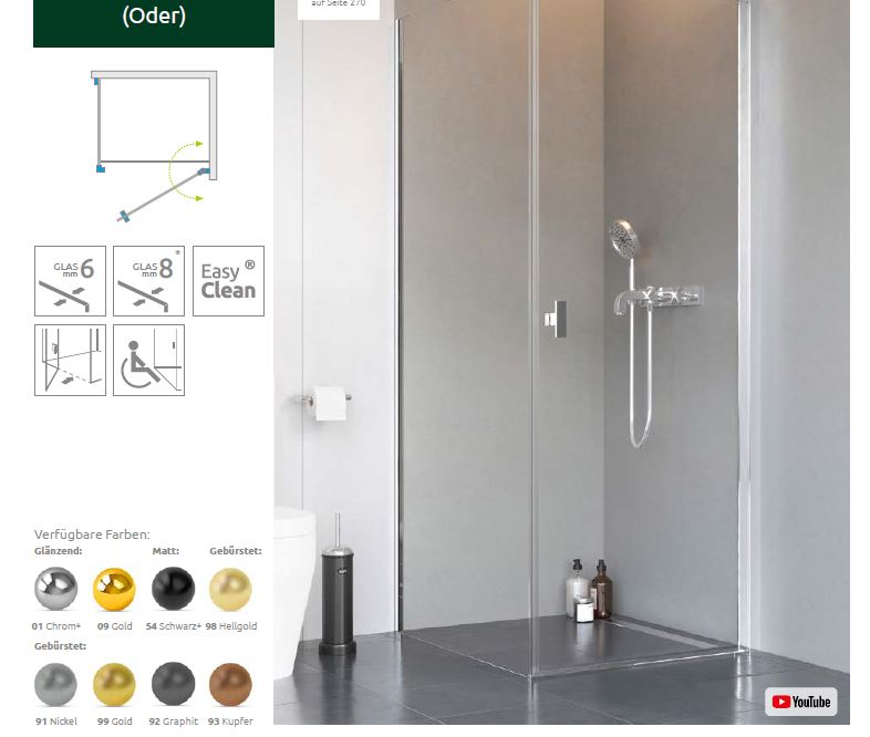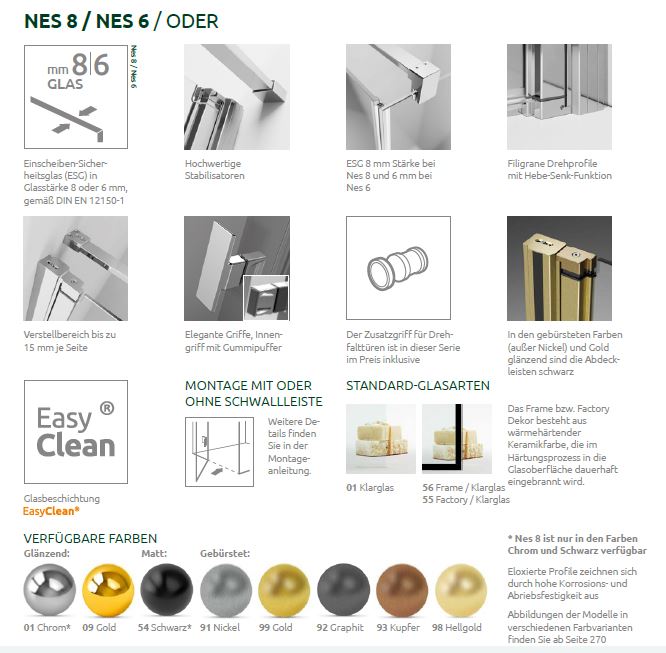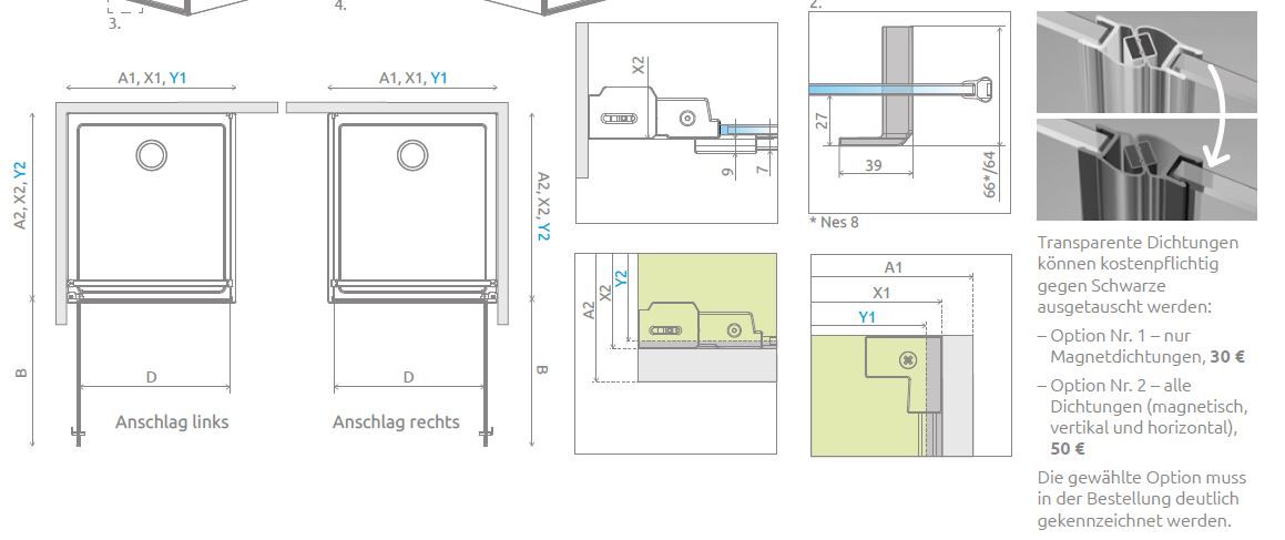 Radaway Nes KDJ I Eck-Duschkabine Pendeltür mit Seitenwand PUK Oder 6mm und 8 mm